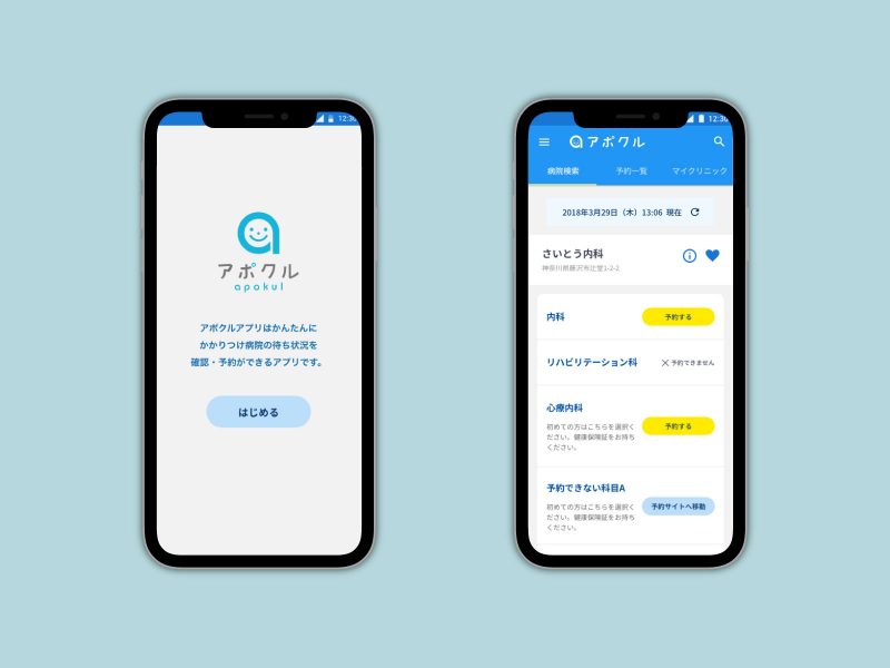 病院予約アプリ。患者情報を登録しなくても予約可能。