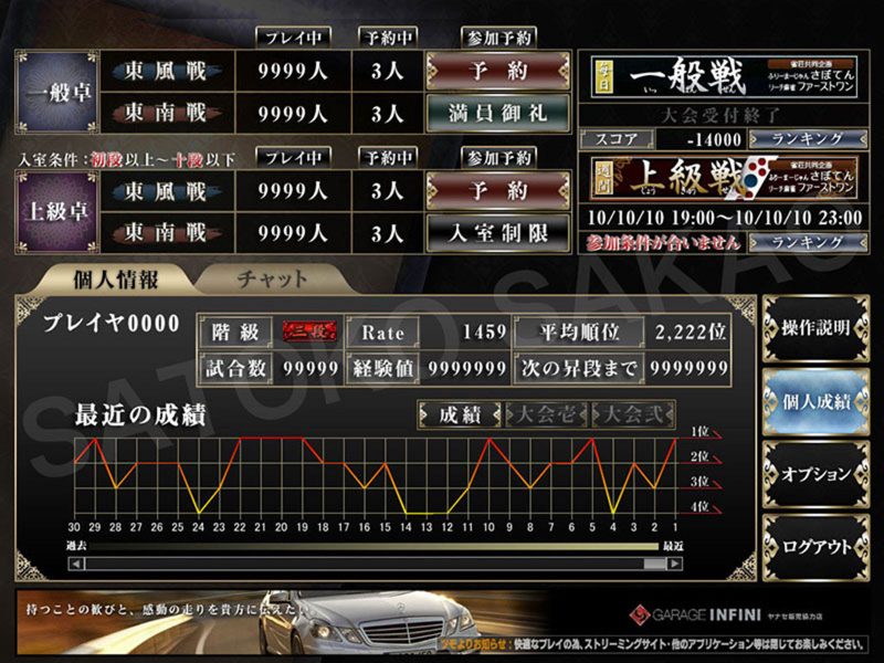PC向けオンライン麻雀ゲームの画面デザイン