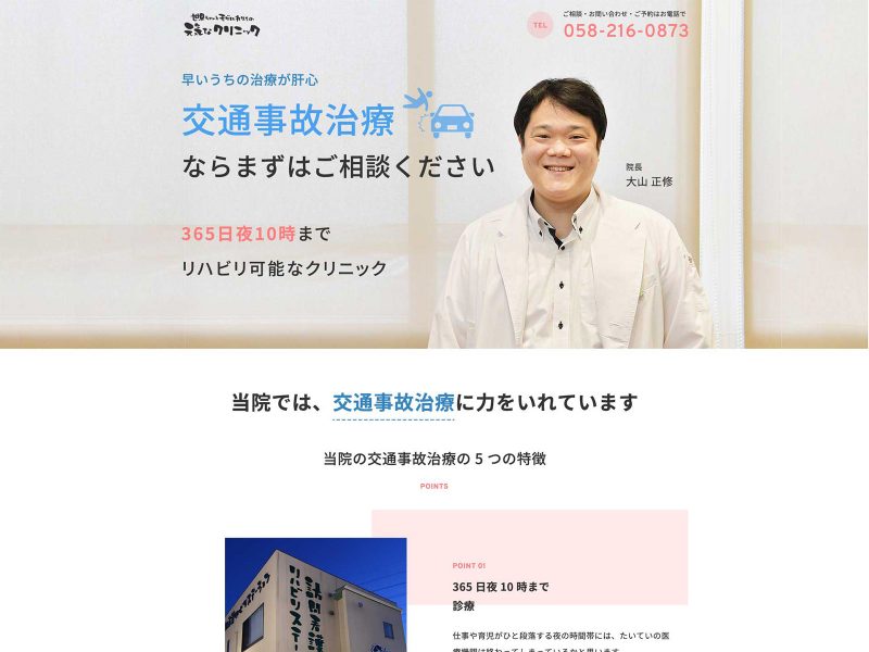 世界ちゃんとモゲル丸先生の元気なクリニック 交通事故治療LP