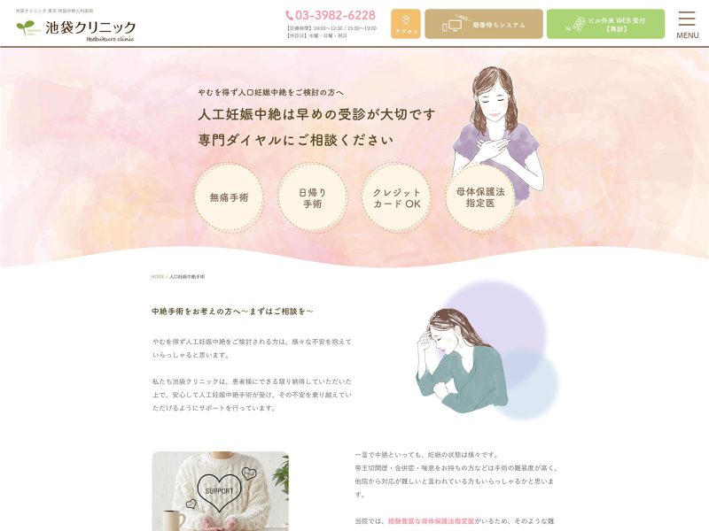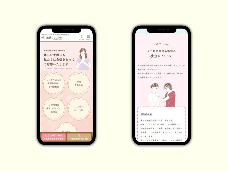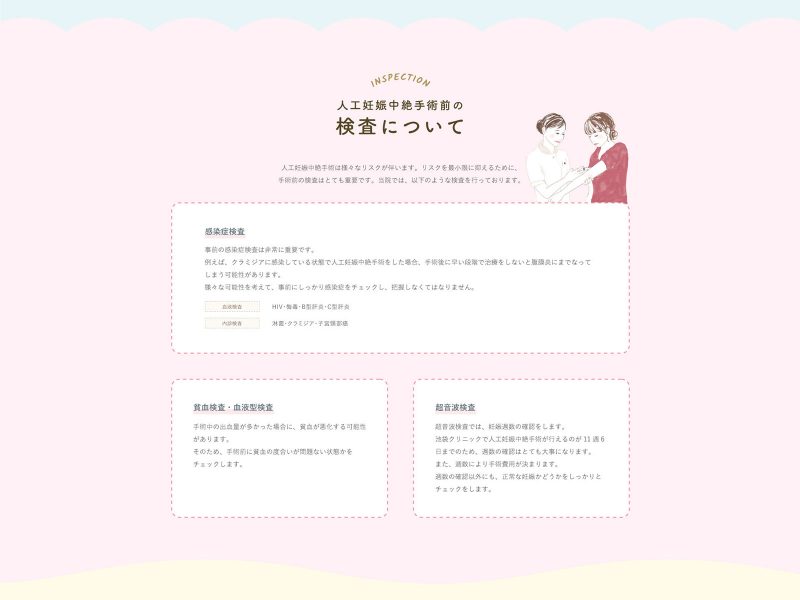 イラストや写真を多用し、女性に安心して受診してもらえるデザインに。